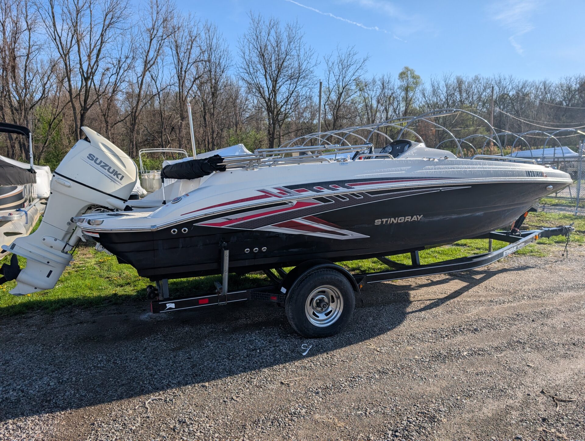 2018 Stingray Boat with Suzuki 140 4 stroke motor and Phoenix trailer. Has ski tow bar and custom snap cover. (Consignment)